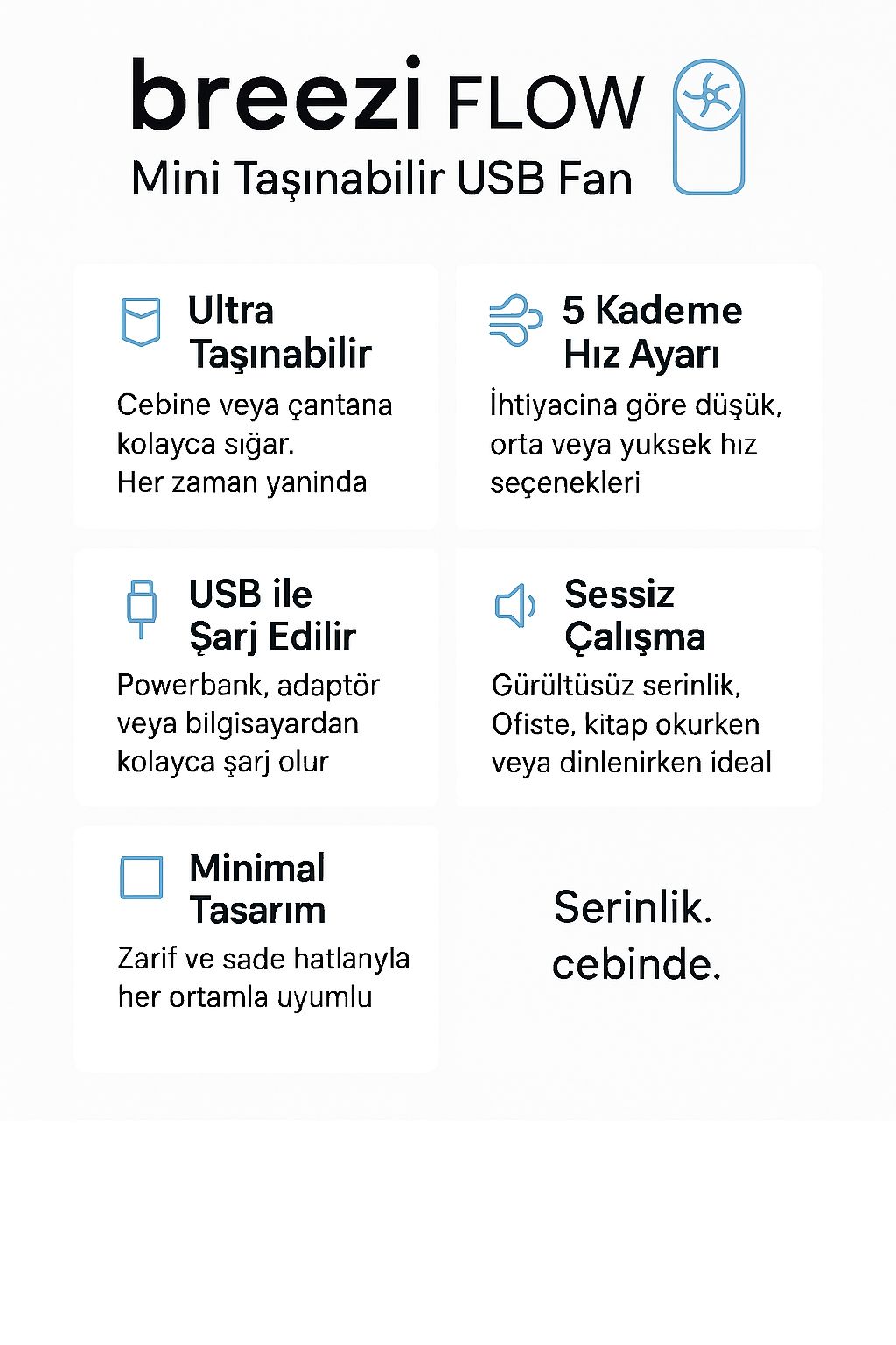 Breezi Flow™ – Mini Taşınabilir USB Fan